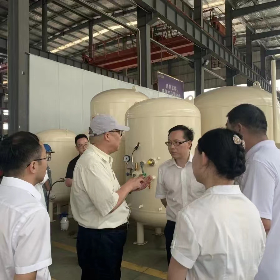王建中總經(jīng)理對(duì)領(lǐng)導(dǎo)的到訪表示熱烈歡迎,并引領(lǐng)參觀了公司A區(qū)LPG供氣儲(chǔ)罐制造車間和帶泵罐車總裝車間。王建中表示,金象科技持續(xù)擴(kuò)大在技術(shù)研發(fā)和生產(chǎn)線技改上的投入,這是公司在今年市場(chǎng)形勢(shì)惡化的情況下得以保持高速增長(zhǎng)的根本原因。目前公司主推的智能小型LPG儲(chǔ)罐供氣系統(tǒng),在LPG能源領(lǐng)域中具有革命性的影響。這一系統(tǒng)不僅技術(shù)達(dá)到了國(guó)際領(lǐng)先水平,更具備了巨大的發(fā)展?jié)摿Α?/span>這一成果充分展示了金象科技在技術(shù)創(chuàng)新和產(chǎn)品研發(fā)方面的強(qiáng)大實(shí)力,為公司未來高質(zhì)量發(fā)展提供了強(qiáng)有力的支撐。