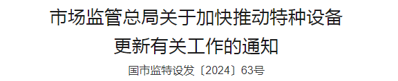 各省、自治區(qū)、直轄市和新疆生產(chǎn)建設兵團市場監(jiān)管局(廳、委):為貫徹落實《國務院關(guān)于印發(fā)〈推動大規(guī)模設備更新和消費品以舊換新行動方案〉的通知》(國發(fā)〔2024〕7號),加快推動特種設備更新,現(xiàn)就有關(guān)事項通知如下。