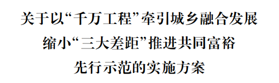 現(xiàn)將《關(guān)于以“千萬工程”牽引城鄉(xiāng)融合發(fā)展縮小“三大差距”推進(jìn)共同富裕先行示范的實(shí)施方案》印發(fā)給你們,請(qǐng)結(jié)合實(shí)際認(rèn)真貫徹落實(shí)。