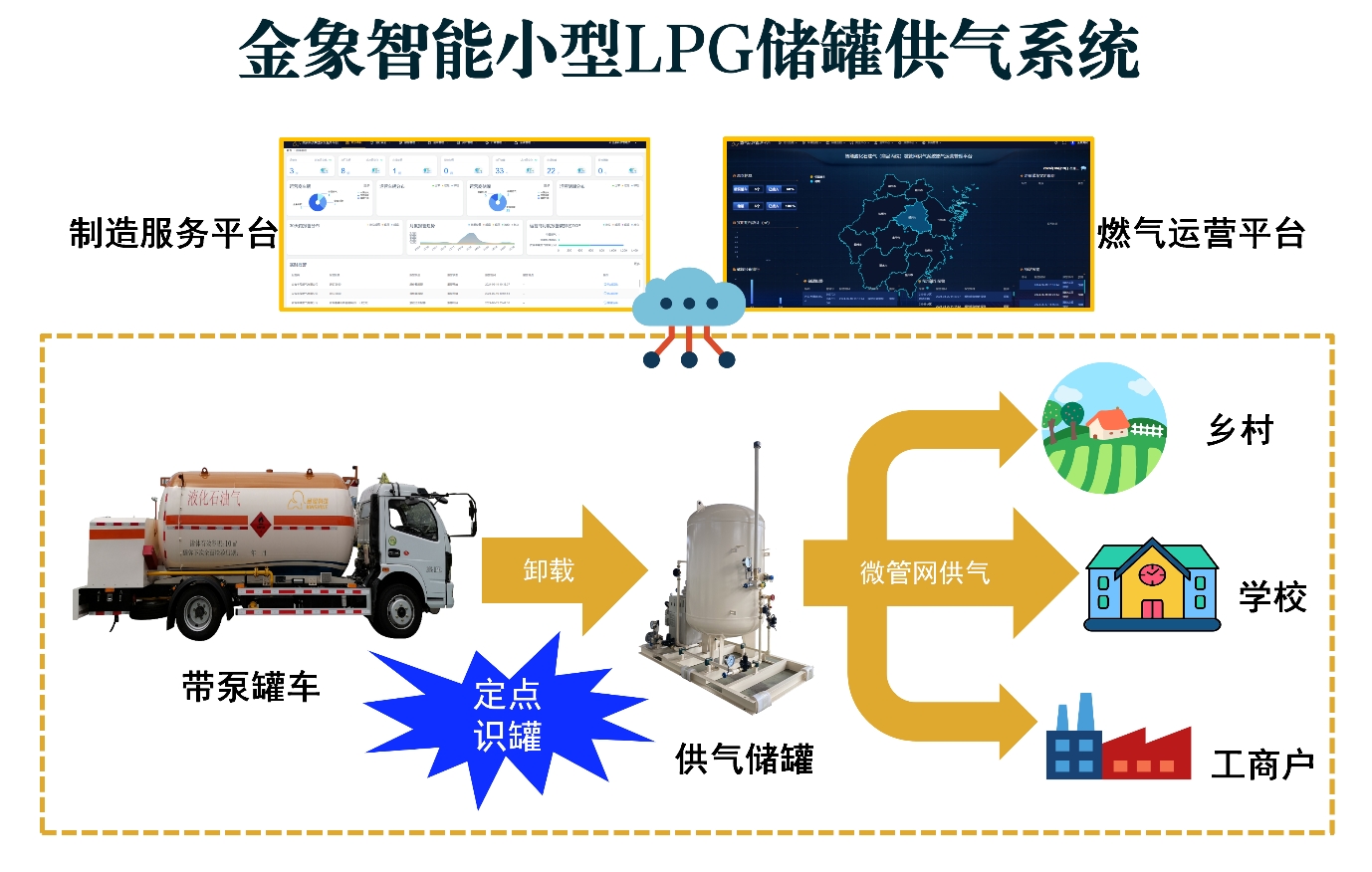 論壇期間,金象科技現(xiàn)場(chǎng)展示了自主研發(fā)的智能小型LPG儲(chǔ)罐供氣系統(tǒng)。其本質(zhì)安全設(shè)計(jì)(如儲(chǔ)罐-罐車雙向識(shí)別、加密配對(duì))及應(yīng)急救災(zāi)功能(支持發(fā)電機(jī)/灶具臨時(shí)供能)獲得與會(huì)專家高度評(píng)價(jià)。多位行業(yè)領(lǐng)導(dǎo)專家指出,該系統(tǒng)為破解農(nóng)村供氣“最后一公里”和燃?xì)獍踩O(jiān)管難題提供了創(chuàng)新路徑。