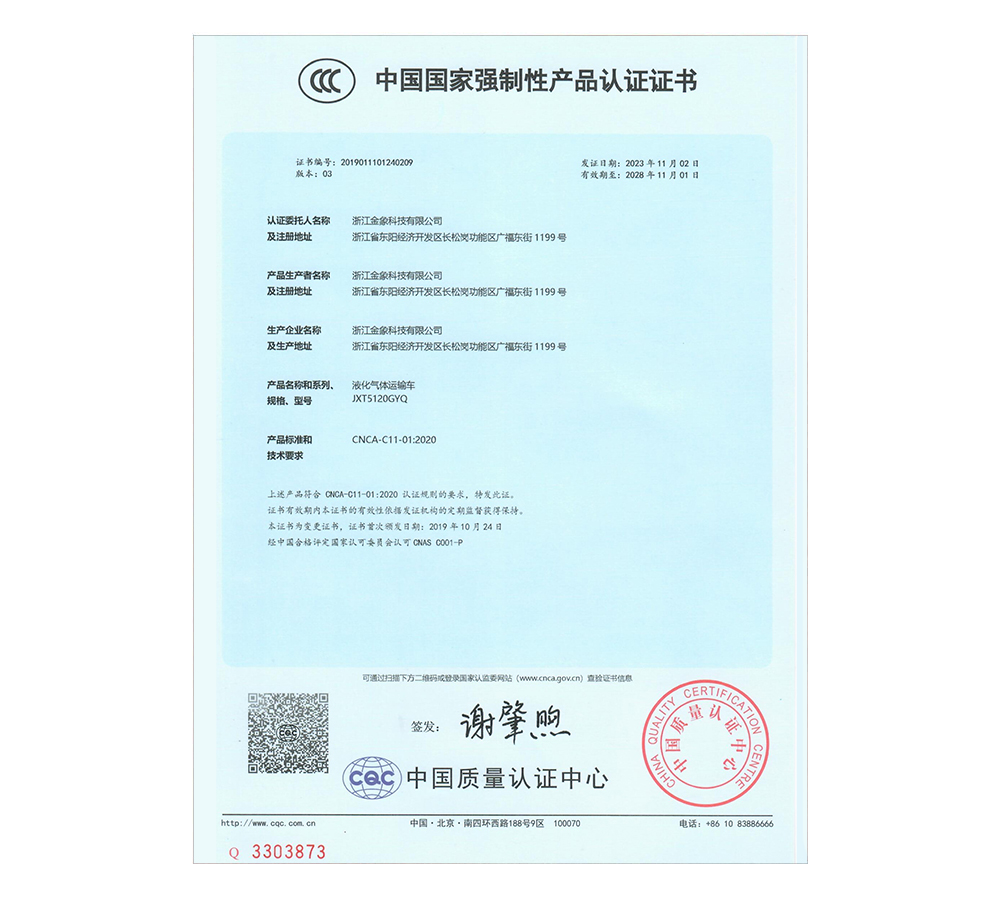 液化氣體運(yùn)輸車-JXT5120GYQ--CCC認(rèn)證證書(2023-2028)-10m3
