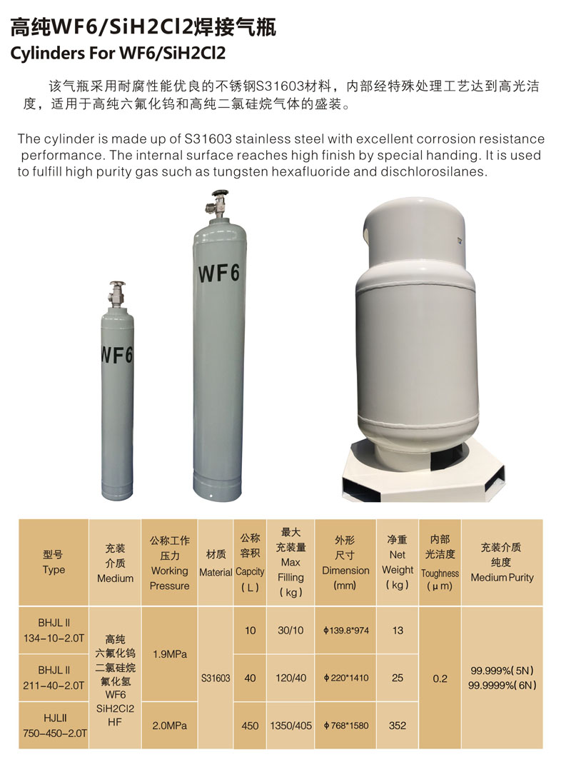 - 名稱:高純WF6 SiH2Cl2焊接氣瓶