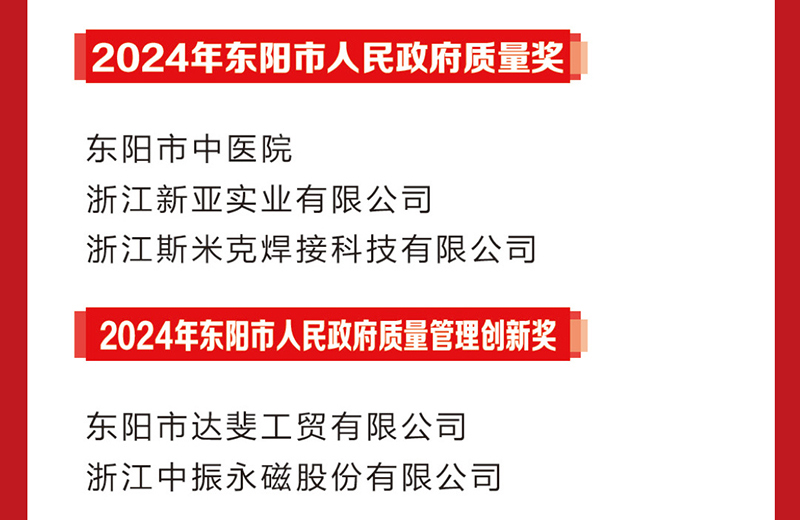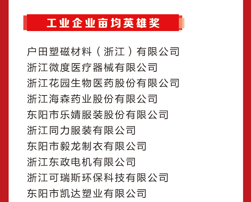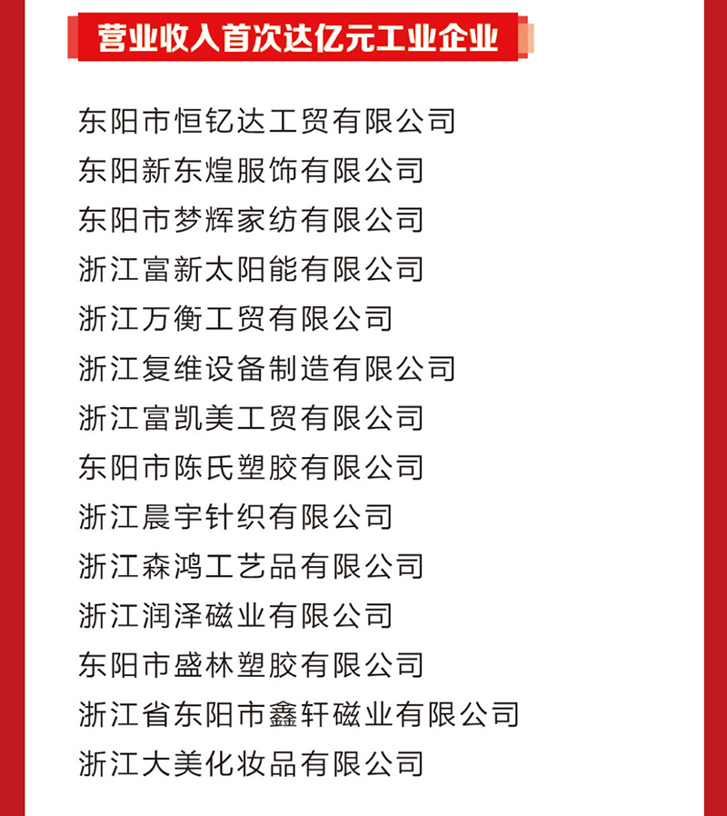 2024年度東陽市工業(yè)經(jīng)濟榮譽榜